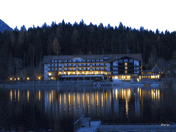 Hotel Eibsee am Ostufer, dem Start- und Zielpunkt der Wanderung. Im