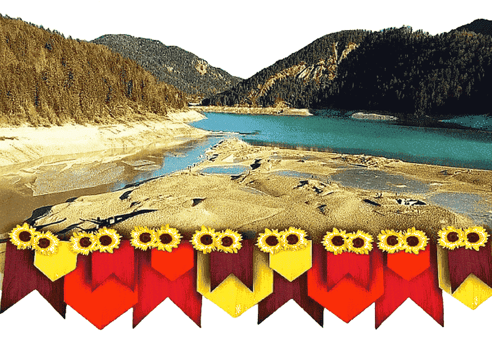 auch die Kirchturmspitze der versunkenen Kapelle sichtbar