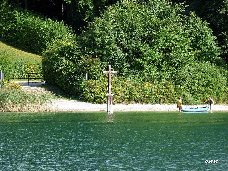 und ein Holzkreuz im See nahe der Unfallstelle.